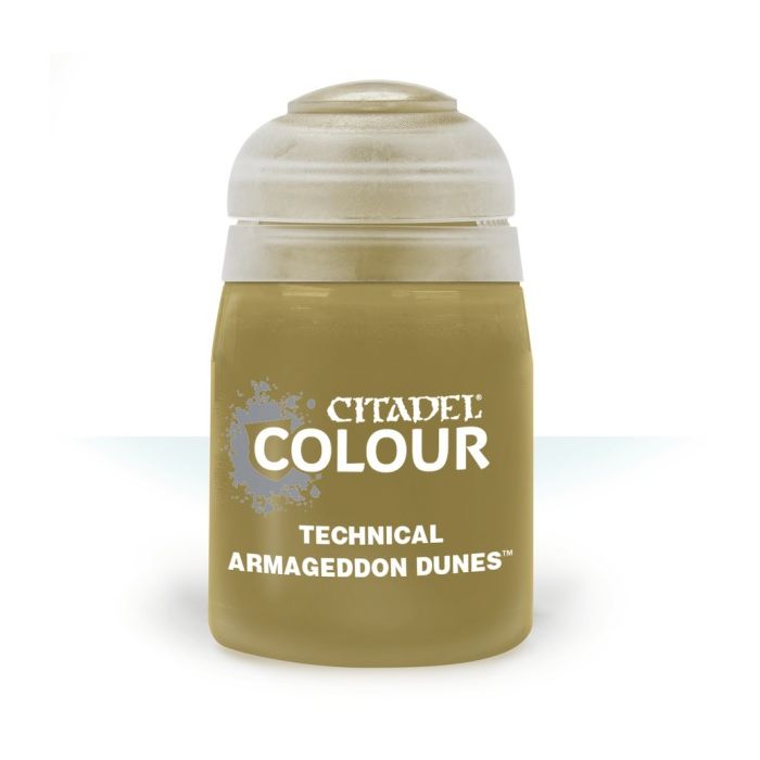 За допомогою технічної фарби Citadel Armageddon Dunes ви можете створити пустельний пейзаж на підставах ваших мініатюр. Коли фарба висихає, утворюється ефект піску.