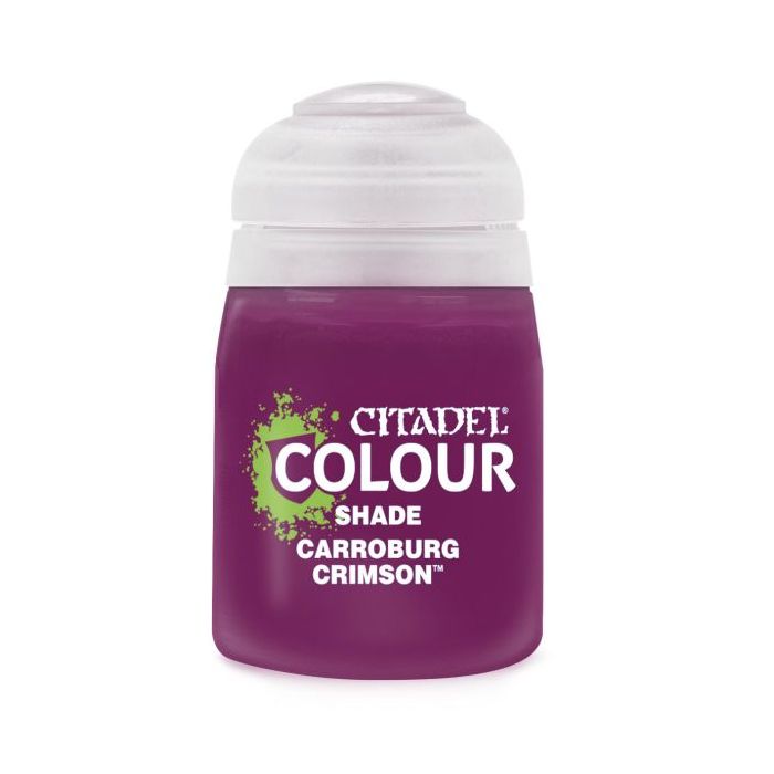 1 баночка акрилової фарби Citadel: Shade: Carroburg Crimson містить 18 мл фарби.