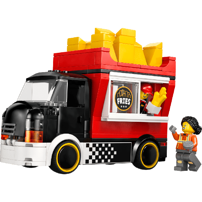 У комплекті: мініфігурки продавця та покупця, а також фудтрак і кіоск із картоплею фрі.