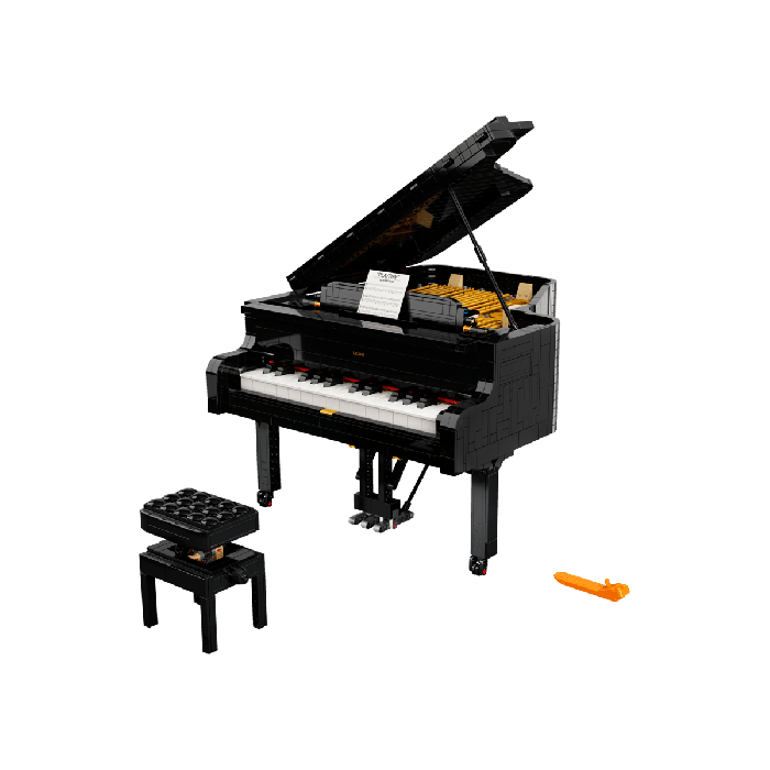 Модель має 25 клавіш, механізм молоточків, рухомі демпфери та педаль — усе працює подібно до справжнього інструмента. Після складання підключіть мотор і використовуйте LEGO Powered Up app, щоб грати самостійно або ввімкнути автоматичне відтворення мелодій.