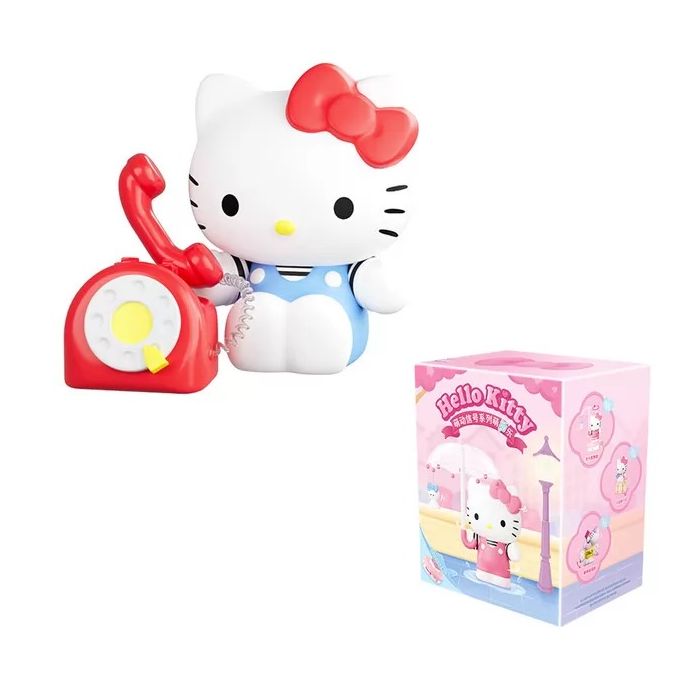 Кожна іграшка має індивідуальний заводний механізм — достатньо повернути ключик, і Hello Kitty починає рухатися та погойдуватися. У наборі також є стерео колекційна картка, яка наочно демонструє механічну функцію фігурки.