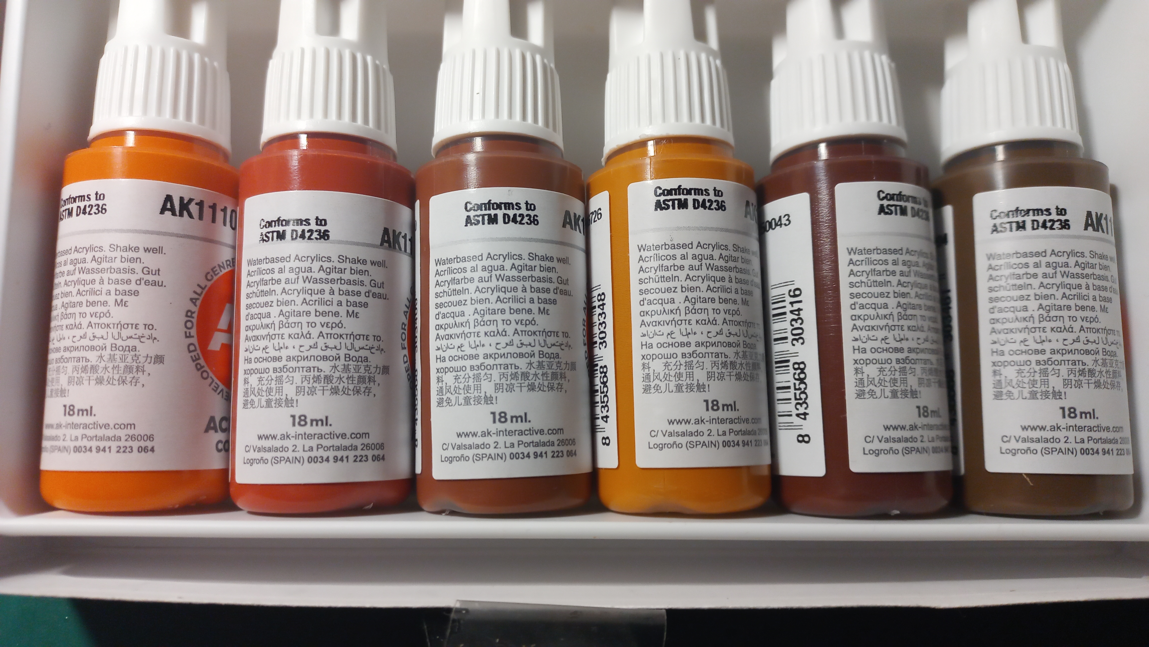 Чудовий набір для імітаці іржі на моделях. 0 люди знайшли це кориснимЯкісна фарба від "AK Interactive". Набір для створення ефекту іржі на ґрунтованих поверхнях у моделей. Набір з 6 кольорів палітри, якісно дає змогу відтворити реальну іржу на поверхні. Оптимальна ціна-якість за набір. Пляшечки по 18 мл. УВАГА - "колізія" в описі товару від магазину та на самій коробці вказано, що ємність 17 мл але на самих пляшечках на етикетці вказано 18 мл.