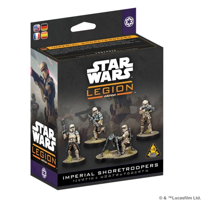 Набір містить два корпусні підрозділи: основний підрозділ Shoretroopers та Shoretrooper DF-90 Mortar Trooper, який можна додати до армії за допомогою ключового слова Detachment, посилюючи тактичну гнучкість ростеру. Це перевидання класичного набору SWL41 Imperial Shoretroopers з тими самими мініатюрами, але з оновленим пакуванням і картками у сучасному багатомовному форматі SWQ.