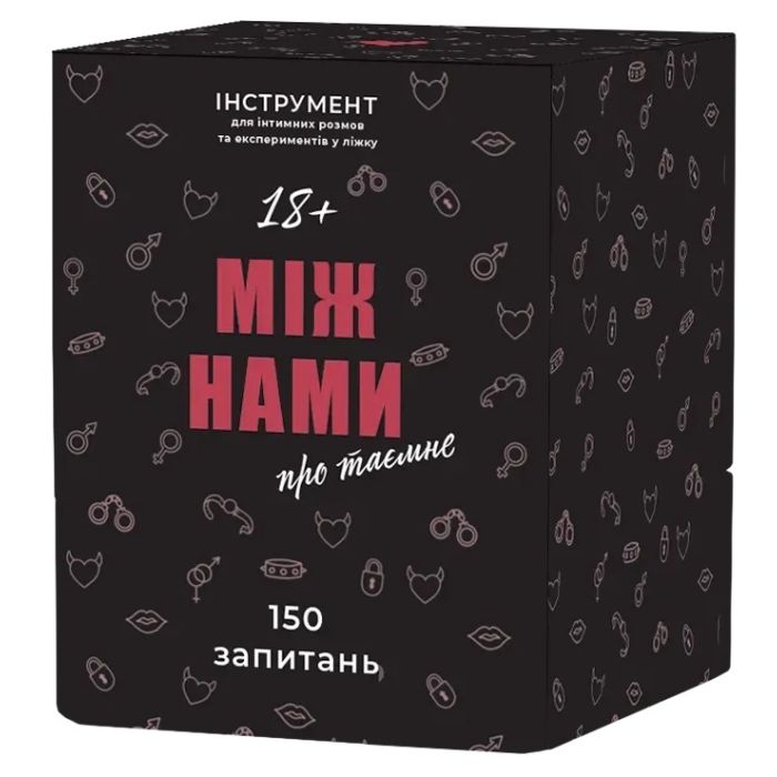 Між нами: Про таємне — інтимна та відверта гра для пар, яка допомагає відкрити приховані бажання, краще зрозуміти одне одного та створити атмосферу довіри й справжньої близькості. Це не просто запитання — це ключі до того, щоб поглибити зв’язок з партнером, розпалити пристрасть і відверто поговорити про те, що зазвичай залишається несказаним.