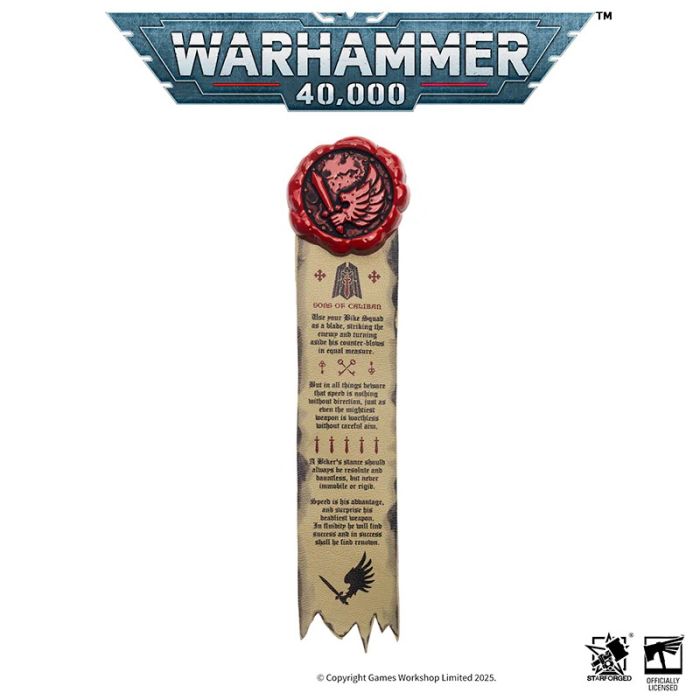 Виріб виготовлений із воскової печатки та пергаменту з акцентом на автентичність і лорну відповідність. Це вдалий вибір для поціновувачів символіки Космодесанту та Ордену Dark Angels.