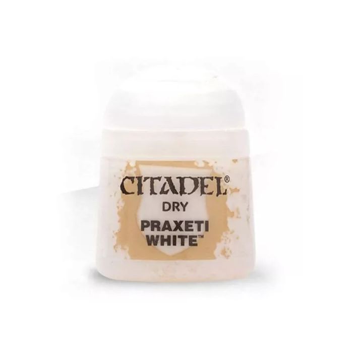 1 баночка акрилової фарби Citadel: Dry: Praxeti White містить 12 мл фарби.