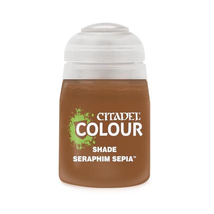 1 баночка акрилової фарби Citadel: Shade: Seraphim Sepia містить 18 мл фарби.