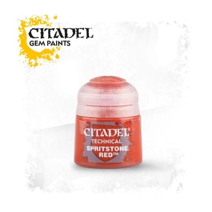 За допомогою технічної фарби Citadel Spiritstone Red ви можете створити ілюзію мерехтливого коштовного каміння або кольорового скла на мініатюрах та моделях. Гелеподібний, напівпрозорий колір надає глибини та блиску, наприклад, коштовним камінцям чи візорам шоломів.